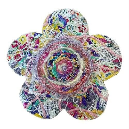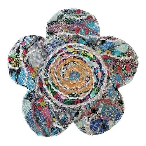 Let me show you how to transform those well-loved, once-forgotten fabrics into vibrant new creations that tell their own colourful stories such as these floral mats below.