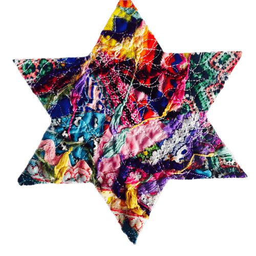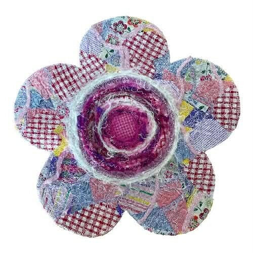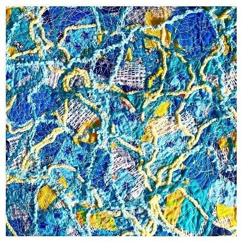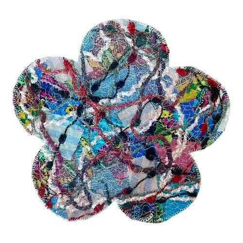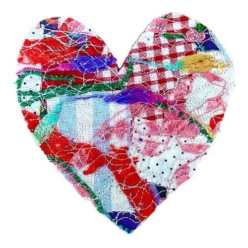 Using fabric collage, I can turn items like worn T-shirts, vintage linens, or off-cut fabrics into striking new cloth, sparking stories through patterns and colour.