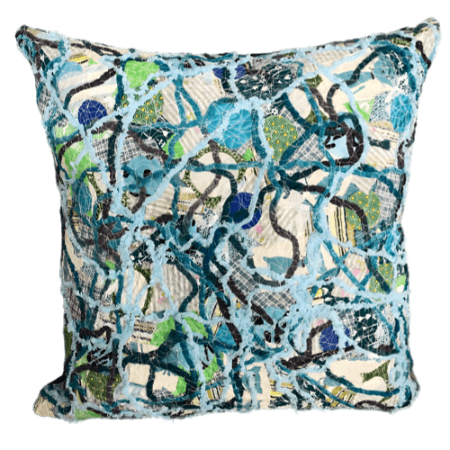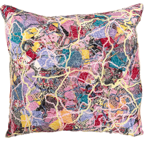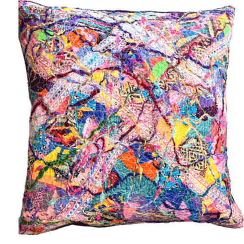 The finished panel can find new life as a cushion cover, wall art, tote bag, or even wearable art. It’s rewarding to watch old fabrics become something both useful and artistic, full of memories and new character. Below are cushion covers l made.