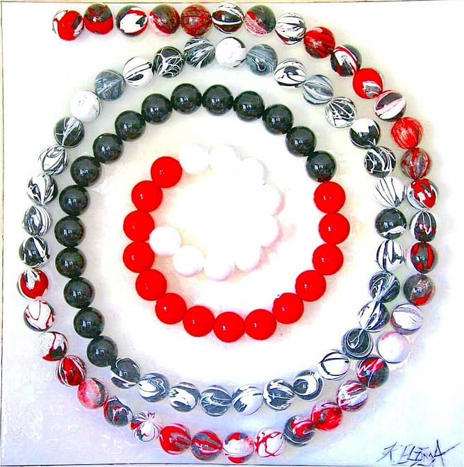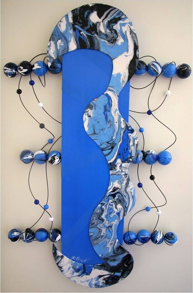 Get super creative and add acrylic pouring to styrofoam balls and thread them with wire and create circular shapes that truely impress. Not all acrylic pours have to be on canvas or boards. Think outside the box!