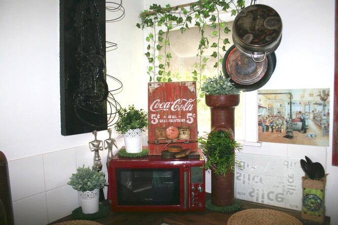 If you have a gap, create something totally different, go super colourful, weird and wacky, it will add a bright spark to a neutrally coloured room, it will look out of place though, so the trick is to give it a purpose.... Mine is the coffee, milo, etc spot, everything l need to create a hot or cold milk drink is visible from this one tiny spot, and instantly a stranger could walk into your kitchen and know exactly without asking you, where to make a coffee.