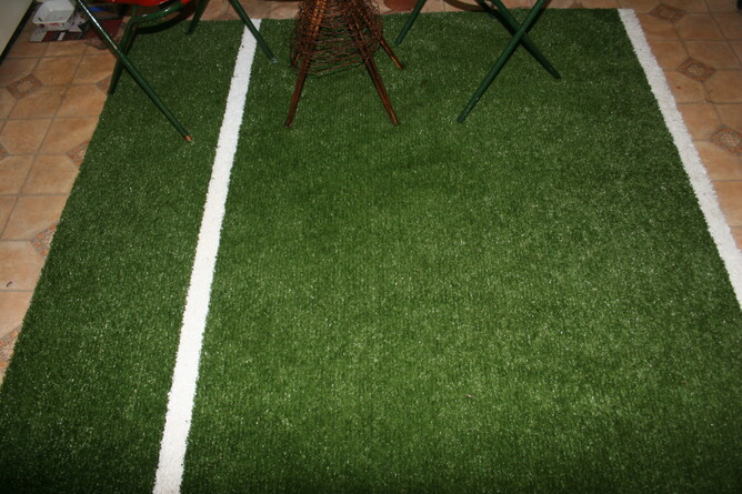 Every time l visit the tip shops or opp shops, l see fake lawn off cuts, this time l discovered a couple of large pieces, immediately l thought, l'll have that, it was at the end of the roll which meant it had the white lines, but that worked to my favor, because it make it look more like a rug, and that's when a rug become my kitchen floor.