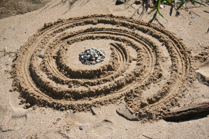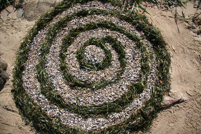 This one was done in a few minutes at the beach using seaweed and crushed shells.