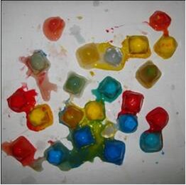 Make sure to add enough paint to the ice cubes when making them, so your paint makes an impact when the ice melts.