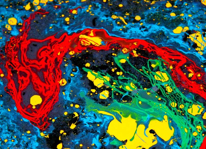 Ephemeral Water Art is a hands-on technique where water mixed with borax water softener allows oil-based enamel paint to float and form ever-changing patterns. These colourful designs only last a few moments, making them perfect for eye-catching photography.