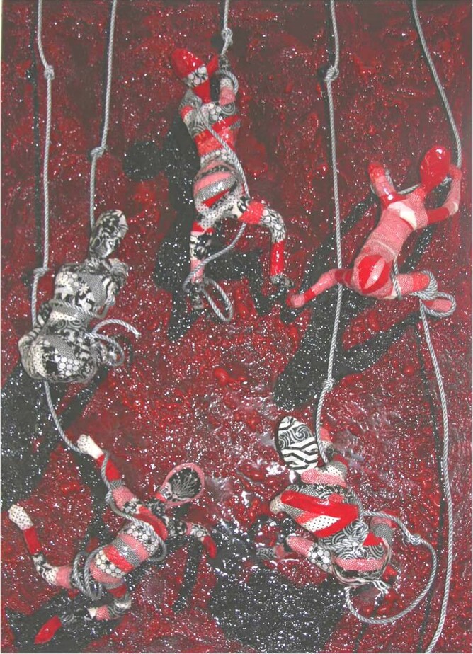 The second product l use is called plumbers gap filling spray, it's actually designed for spraying into holes to fill them up, it sprays like a liquid but then expands like mad, l use it by spraying certain sections of the canvas then l scrap it across using a plaster scraper plastic tool, you can use a piece of wood or anything with a flat edge, but scrap well, because it continues to expand, and you don't want a ten centimetre expansion coming out of your canvas like a giant growth. It is a highly effective tool for getting maximum texture especially for abstract art. Here's one that l used it for in the background.