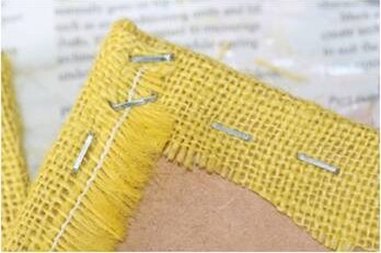 Here's how to finish the underside. You need a staple gun, or some very small tiny nails, but if your an artist you'll need a staple gun before long so just buy one, a good one! The fabric goes over the sides of the MDF and around to the back, remember to pull it tight, you don't want a baggy finish, and pay attention to your corners, the neater the better. Try to get the join right on the corner, rather than down to one side, it's much more professional looking.