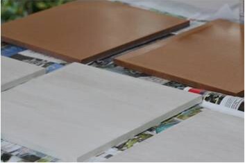 Boards are pre sanded lightly with a very fine sandpaper and coated with diluted binder