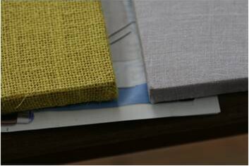 binder medium which acts as the glue, so give it a generous coat, than apply either Muslin or Hessian cloth. Both are available and cheap as chips at fabric stores. Apply binder medium over the fabric to ensure a flat surface when dry.