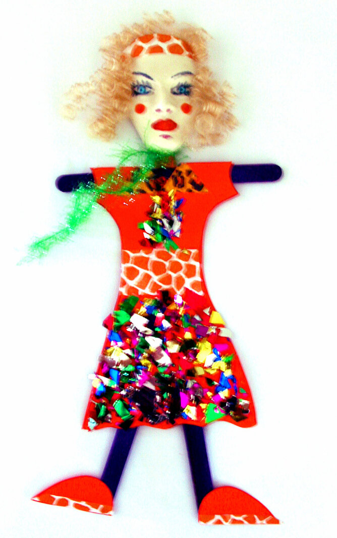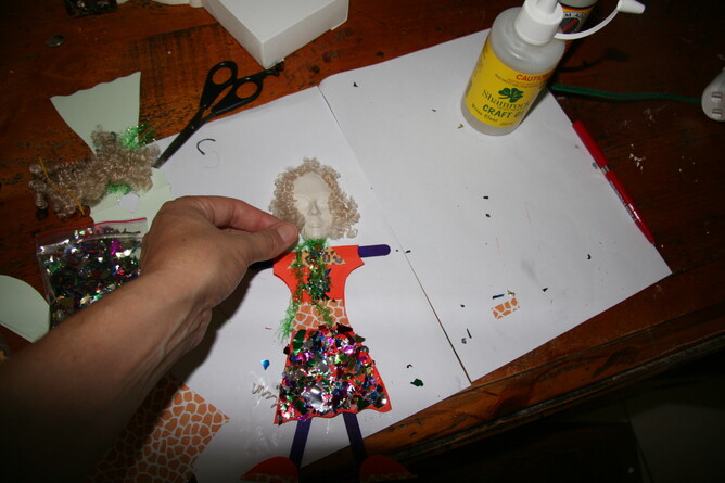 Add all your body parts ensuring to add a good dollop of craft glue (dries fast) for good solid adhesion and leave to dry completely. Whilst your person is drying kids can gather ingredients for their clothing.