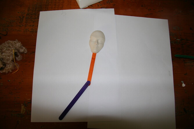 Start by gluing your plaster head to a pop stick, use craft glue for the best fixation.