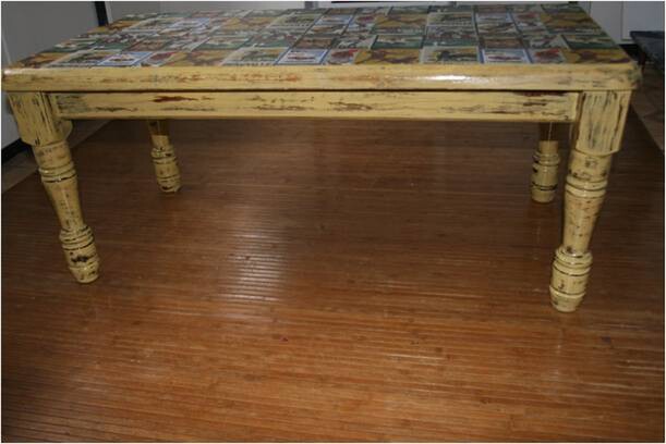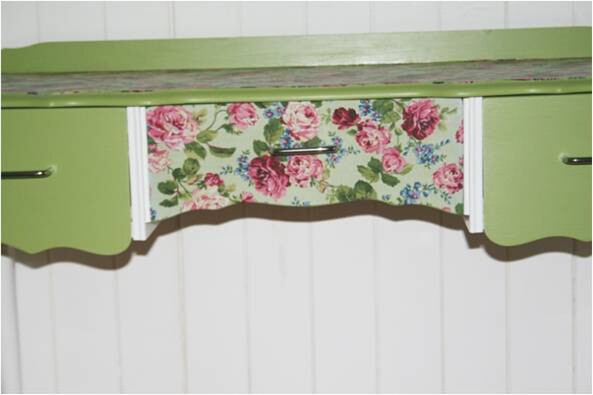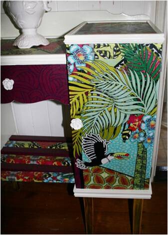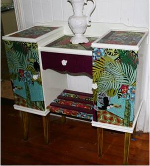 Shabby chic old wooden furniture, it's the easiest and best way to hind any dents and bumps that the furniture has had in it's previous life and cover the tops with fabric (SEE MY LESSON ON HOW TO COVER FURNITURE WITH FABRIC) For a new and interesting finish. Tables are in abundence at tip shops, garage sales and op shops, and there's money to be made easily by covering tables with eclectic and funky fabrics. My view is if you can cover a book with sticky plastic book cover, than you'll be able to do this project with ease.