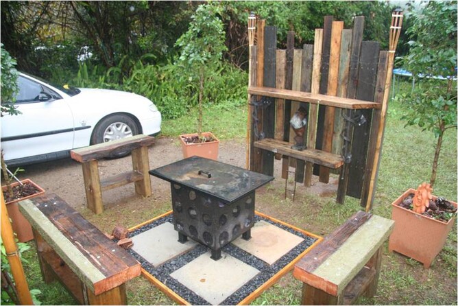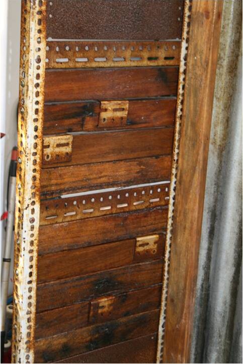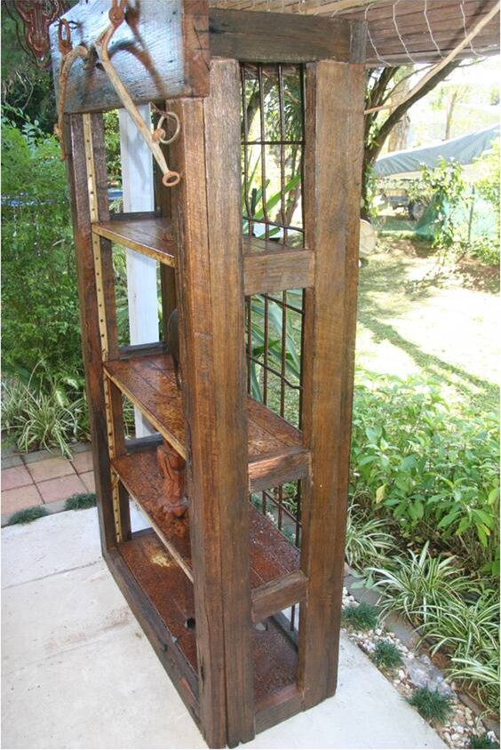 Every Tip shop has some of these rusted metal shelves, metal stabilizer grid for concrete and timber. By wrapping timber around your metal shelves you get a new look entirely, and again gloss varnish those metal rusted shelves and it will look amazing. These make for great outdoor furniture items in undercover areas.