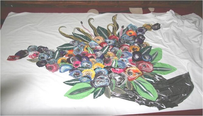 Finished work. 137cm x 116cm x 6cm depth Bunch of Flowers