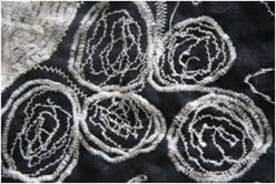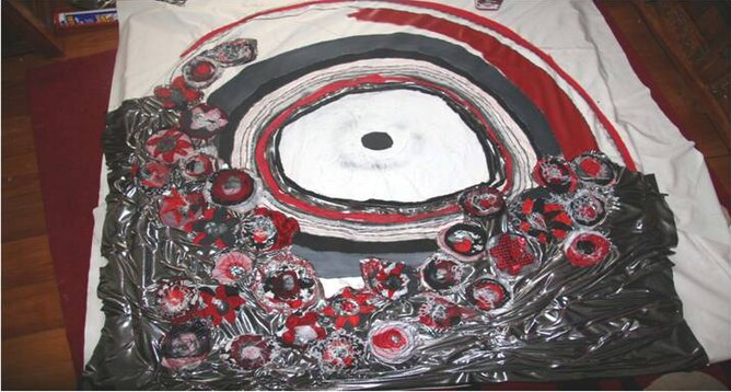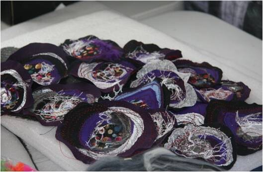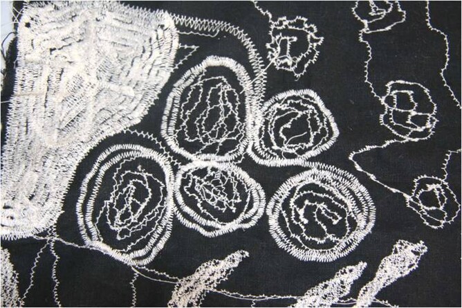 Step 3. The next step was sewing wool onto a flat piece of curtain backing in circles