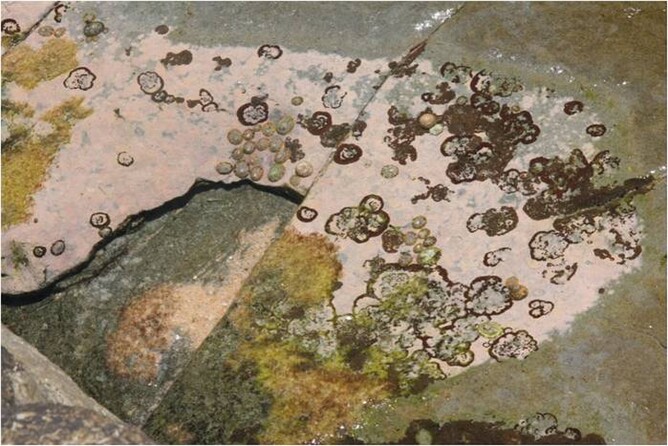 Time observed 3.30pm Area has no water covering rocks at all, some areas of rock are completely dry, lightening them in colour from when in their wet form.