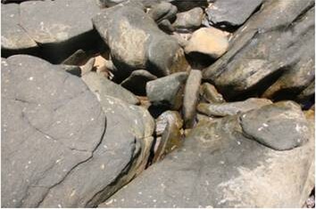 4. Contradictions and Contrasts – There are several contradictions in this site including: Hard rocks against the softness of moss and algae. Sharp objects such as broken shells or cru-stations against blunt objects such as rocks and sand