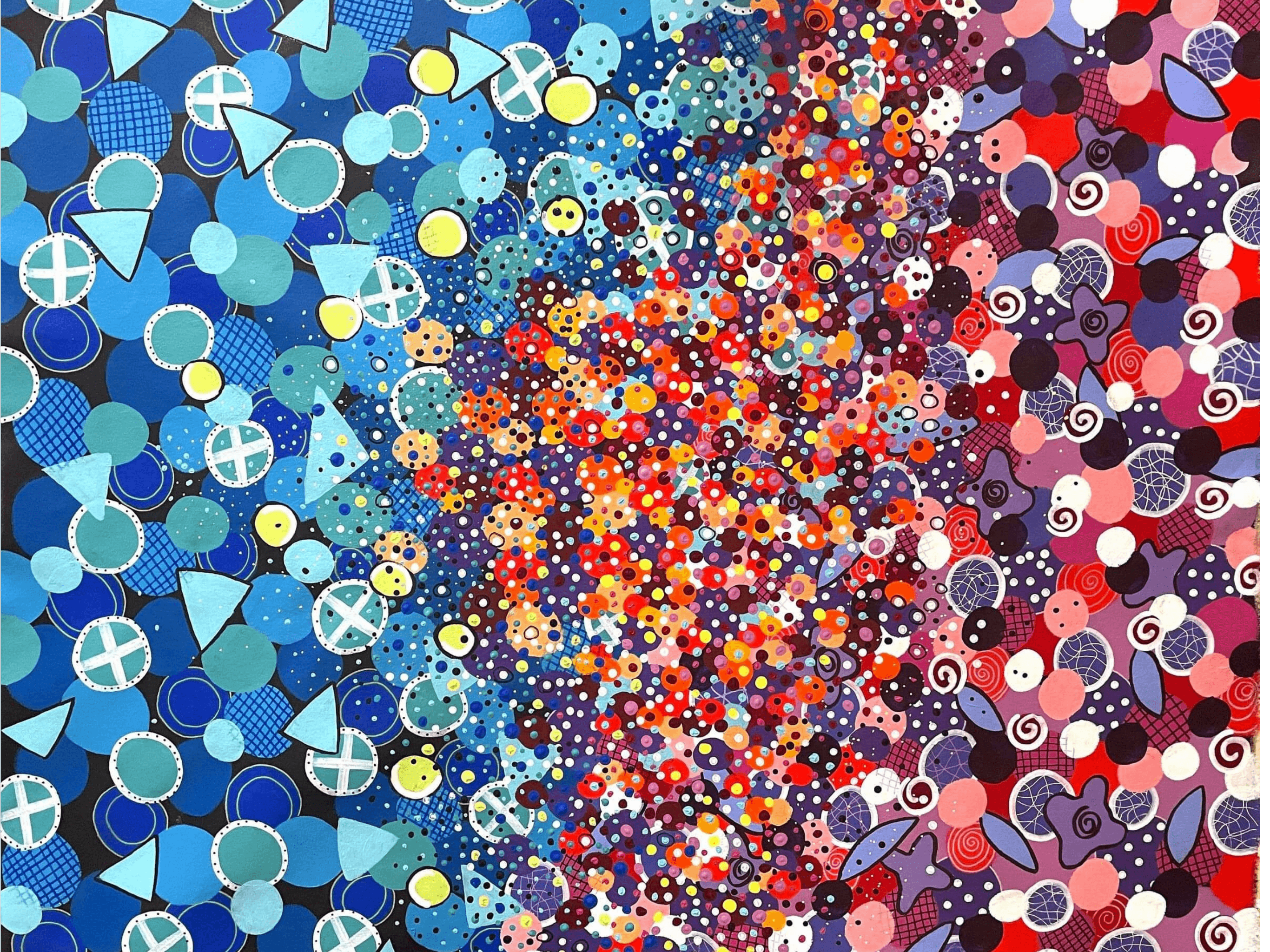 Original abstract art by Kaz Elzinga, featuring vibrant, colourful and intricate extra-large statement pieces. Commissions available.