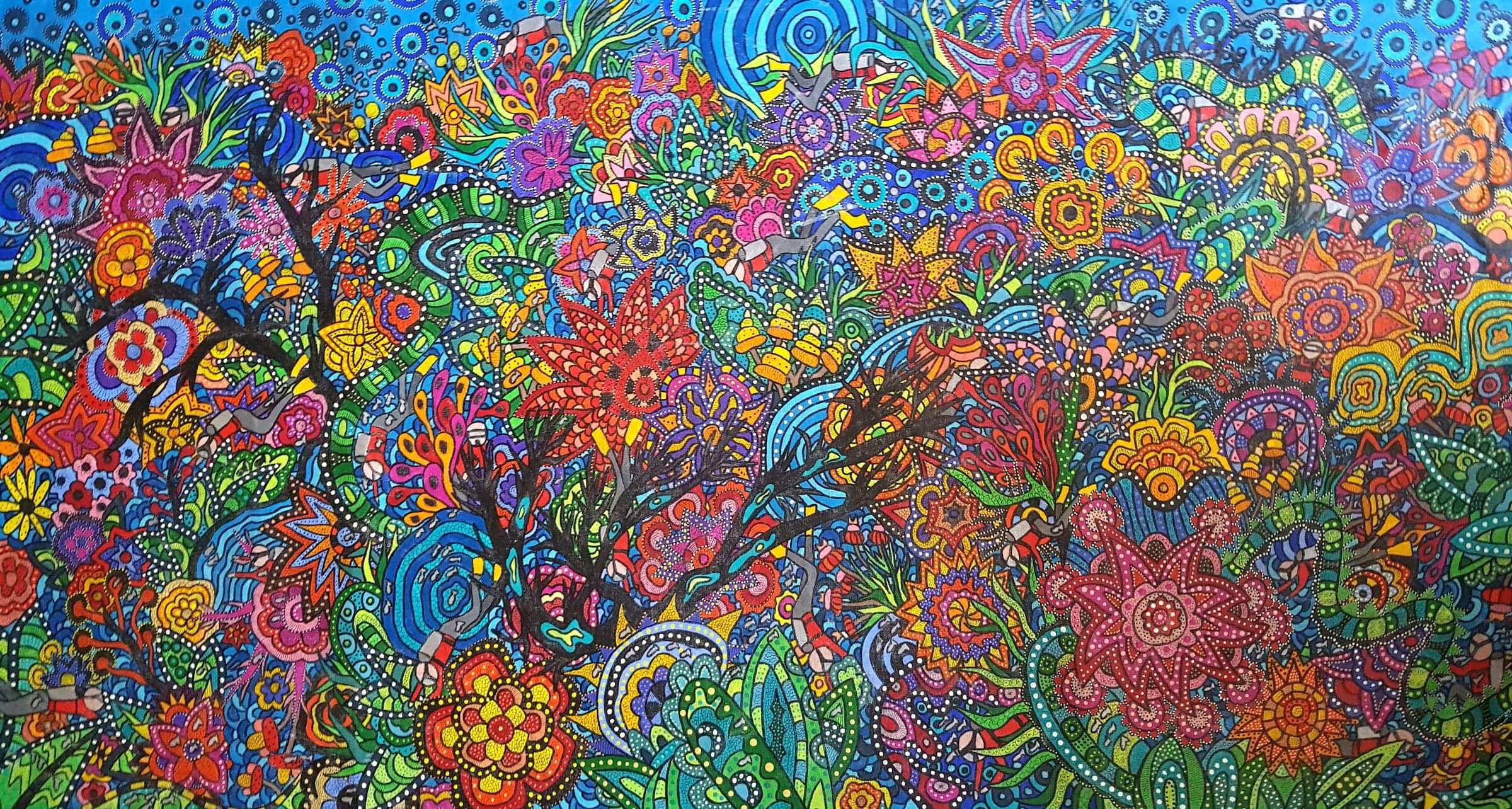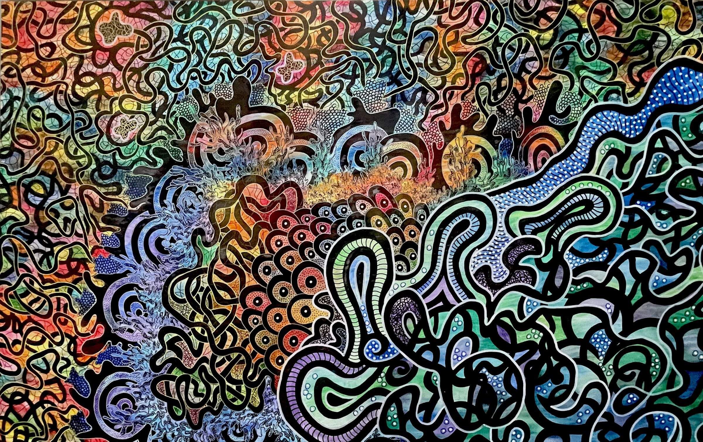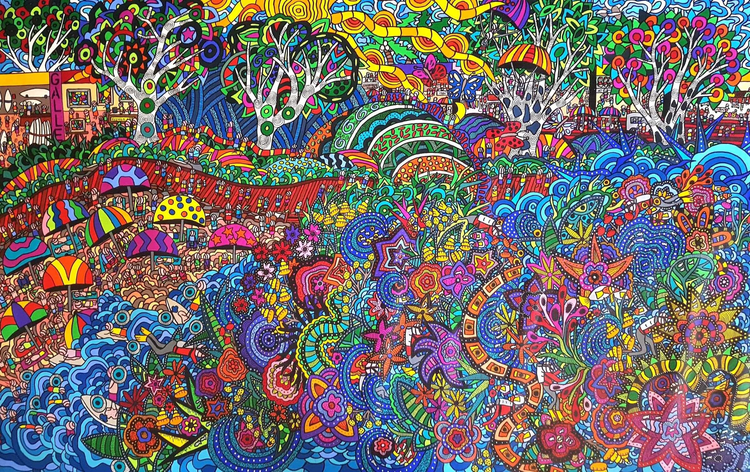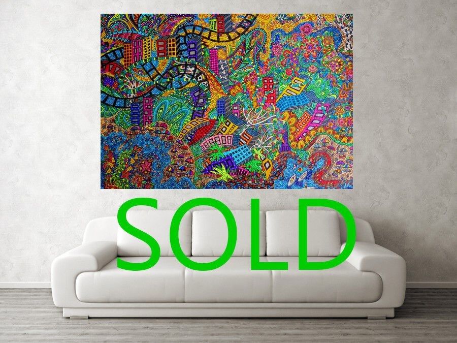 Repeat Buyer Andrea from Brisbane- Dear Karen, We are thrilled with our painting, Beach Culture. Thank you so very much. I wanted to let you know it is really lovely dealing with you. Thank you for taking the time with us while we made our decision, and also a HUGE thank you for helping with delivery. The painting arrived in perfect condition. We can't get over how vibrant the colours are in real life. It is simply stunning. I loved this painting from the minute I saw it online and it is more impressive in real life. When people come to the house, they always comment on how striking the painting looks against the plain wall, then they ask where we got it and then at some point we find them standing inches away from it staring at its intricacies and marveling at the colours and the design. Everyone loves it. You are extremely talented, and the painting we now own is beautiful, a stand out piece. Thanks again and keep creating.