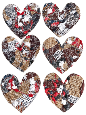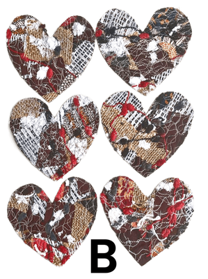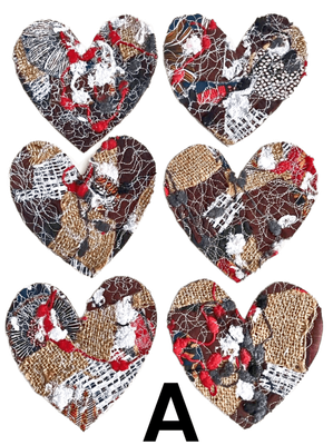 SKU: RUSTIC6 A Fabric patch hearts 6 pack iron on back 11x11cm RUSTIC6