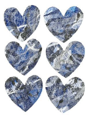 Fabric patch hearts 6 pack 11x11cm (IRON ON BACK) FALON6