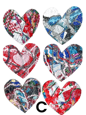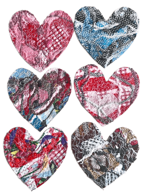 Fabric patch Hearts 6 Pack multi colour (IRON ON BACK) 11x11cm MULTI6