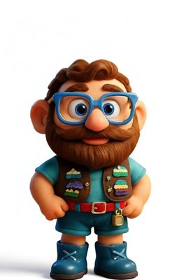 The character Gruff Man is one of a kind original designed by artist Karen Elzinga through a physical process of making the character first in concrete, painting it and then rendering that finished sculptured work into a cartoon model ( the concrete sculpture is pictured so you can see where the idea came from, the sculpture is for sale in the store and is not included with this sale)