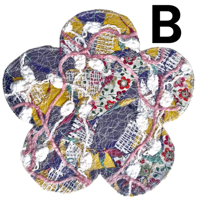 The back consists of soft adhesive backed white felt. placed onto the back of the fabric and yarn collage construction.for a professional look and finish.