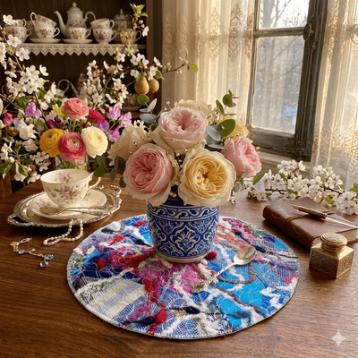 Hand made by Designer artist Karen Elzinga this mini mat is a gorgeous addition to any interior design or table.