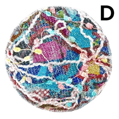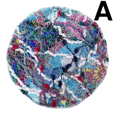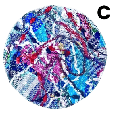 The back consists of soft adhesive backed white felt. placed onto the back of the fabric and yarn collage construction.for a professional look and finish.Mats are constructed to have a rustic look and very textured feel.