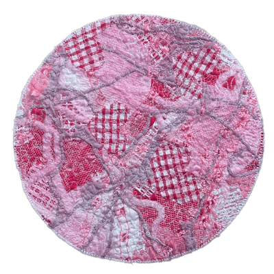 The back consists of soft adhesive backed white felt placed onto the back of the fabric and yarn collage construction.for a professional look and finish. Mats are constructed to have a rustic look and very textured feel.