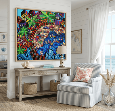 Artist’s Note: This piece captures the chaotic beauty of the ocean merged with the rhythmic pulse of the shore. It’s designed for those who aren't afraid of color and want their walls to tell a story of adventure.